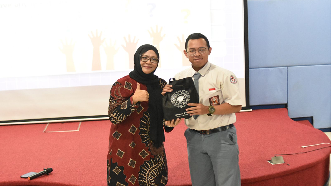 Setelah materi diberikan, para siswa mendapat kesempatan untuk bertanya kepada pembicara mengenai materi yang telah disampaikan. Para siswa yang memberikan pertanyaan mendapatkan cenderamata dari tim STBA JIA.