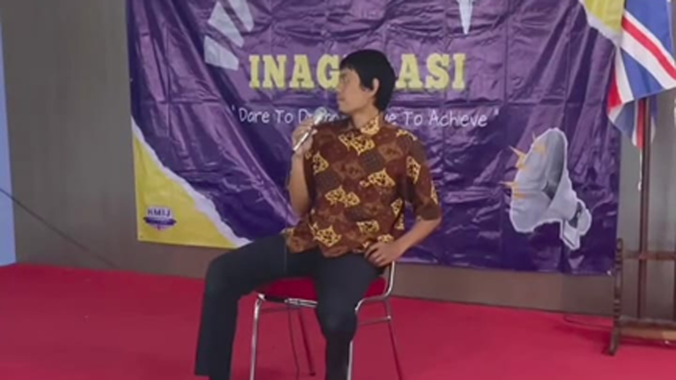 Acara dilanjutkan dengan pemberian materi oleh Mr. Beny Alam untuk memberikan motivasi kepada mahasiswa dan mahasiswi baru anggota HMIJ.