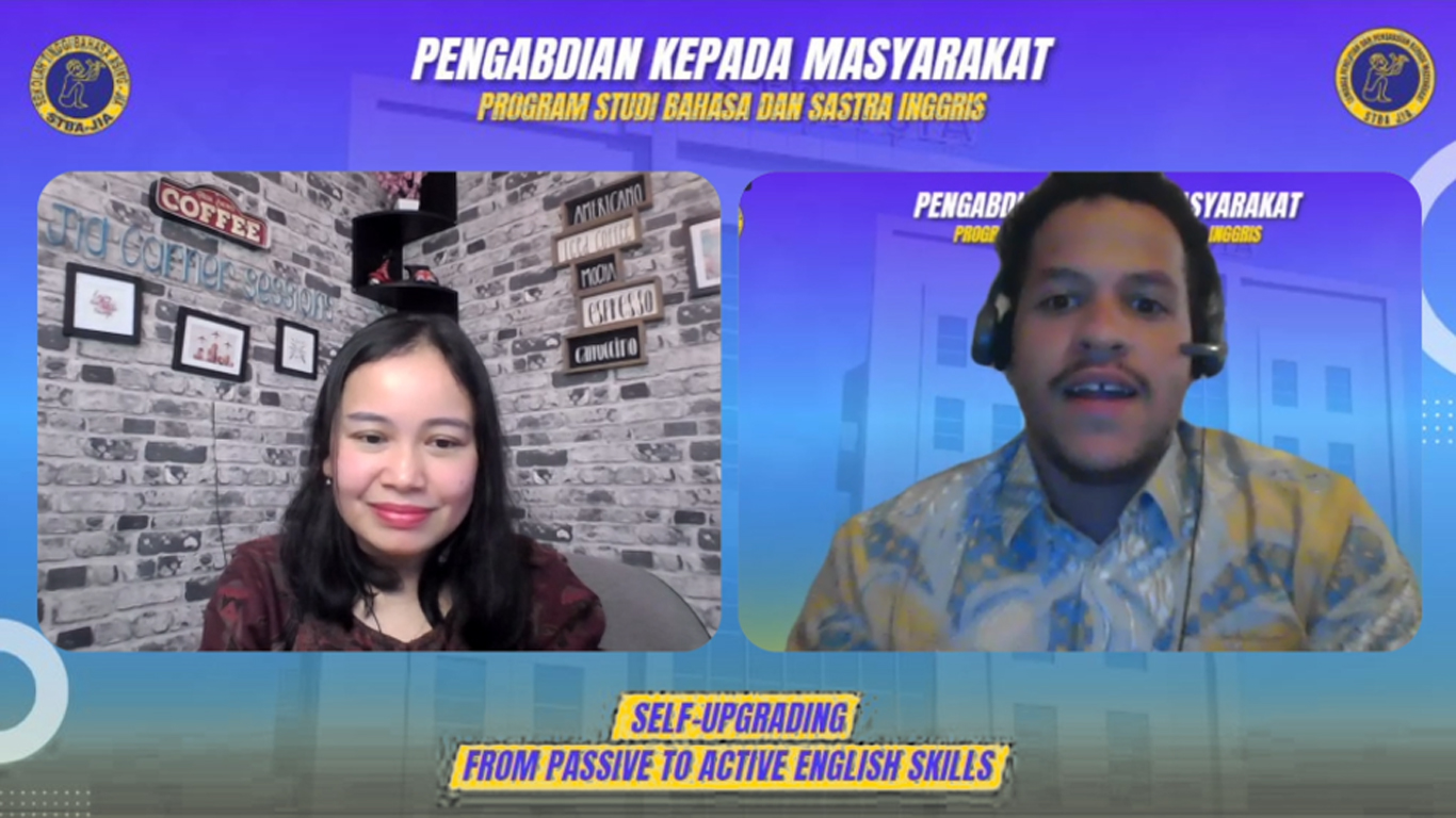 Pada Sabtu, 29 Juni 2024 Program Studi Bahasa dan Sastra Inggris Sekolah Tinggi Bahasa Asing JIA melaksanakan kegiatan Pengabdian Kepada Masyarakat (PKM). PKM ini bertemakan Self-upgrading from Passive to Active English Skills yang ditujukan kepada khalayak umum, baik pelajar maupun nonpejajar dengan tujuan meningkatkan kemampuan Bahasa Inggris. Kegiatan ini diketuai oleh Bapak Elsan Arvian, S.S., M. Hum yang beranggotakan 4 panitia dosen yaitu Ibu Esterria Romauli, S.S., M.Pd., Ibu Inta Masni Sinaga, S.S., M. Hum., Bapak Imron Hadi, S.S., M. Hum., Ibu Winda Lutfiyanti, M.Pd., dan panitia dari mahasiswa yang ikut berpartisipasi dalam menyiapkan kegiatan ini.