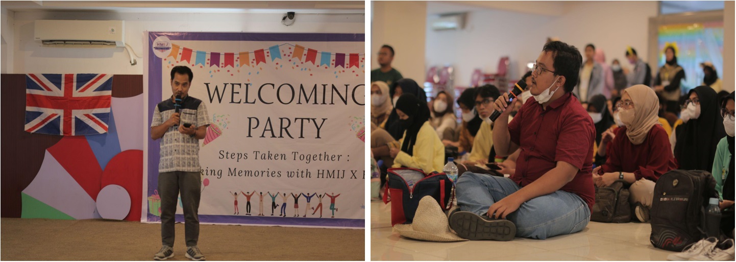 Rangkaian acara Welcoming Party dibuka pukul 09.30 oleh MC, lalu sambutan dari Ketua Pelaksana, Shely Aditya dan Ceicilia Putri yang juga merupakan Ketua HMJJ dan HMIJ. Shely dah Ceicil menyampaikan rasa syukur atas terlaksananya acara ini dan menyambut peserta yang sudah menjalani perkuliahan selama 1 minggu.