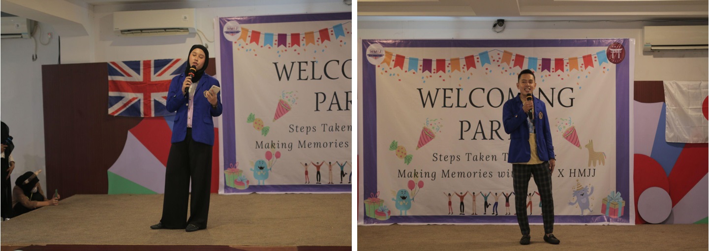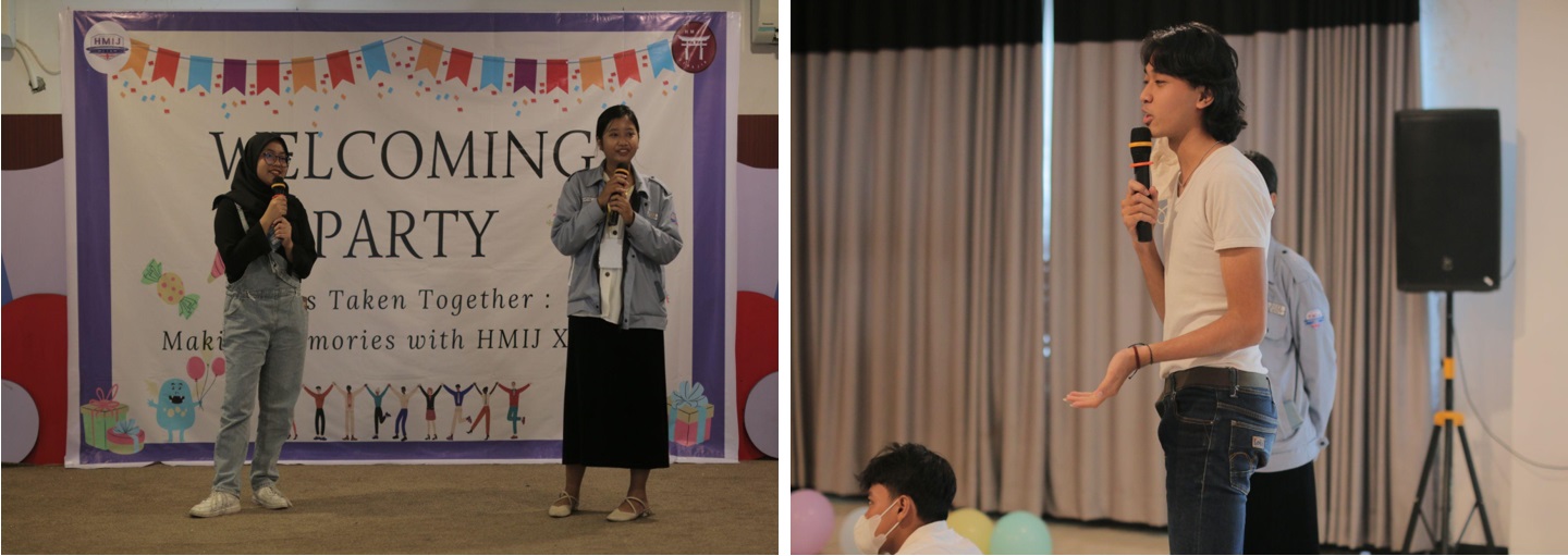 Rangkaian acara Welcoming Party dibuka pukul 09.30 oleh MC, lalu sambutan dari Ketua Pelaksana, Shely Aditya dan Ceicilia Putri yang juga merupakan Ketua HMJJ dan HMIJ. Shely dah Ceicil menyampaikan rasa syukur atas terlaksananya acara ini dan menyambut peserta yang sudah menjalani perkuliahan selama 1 minggu.