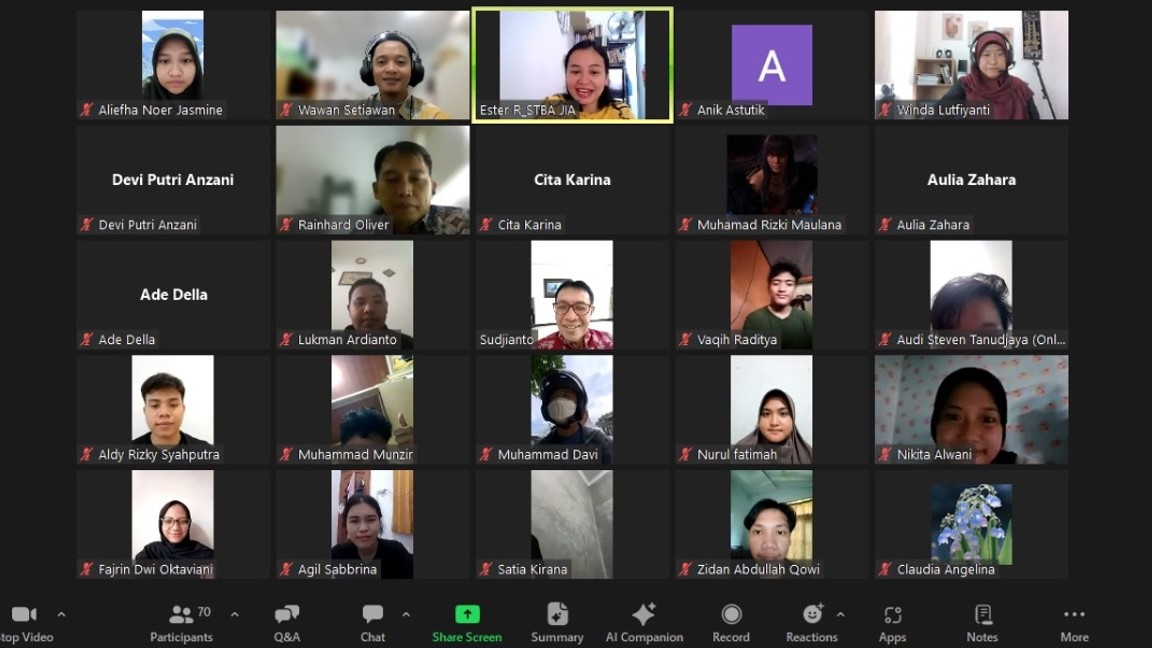 Senin, 5 Februari 2024, STBA JIA mengadakan Lokakarya penggunaan Penggunaan LMS Edlink. Tujuan dari Lokakarya ini adalah untuk menjelaskan petunjuk teknis penggunaan LMS Edlink kepada dosen dan staf akademik, dengan sasaran penggunaan LMS Edlink secara optimal pada pembelajaran di STBA JIA. Kegiatan dimulai pada pukul 10.00 WIB dan selesai pada pukul 15.30 WIB. Acara berjalan dengan lancar tanpa gangguan. Acara diikuti oleh 27 peserta yang terdiri atas 22 orang dosen tetap, 1 orang dosen tidak tetap, dan 4 orang staff akademik.
