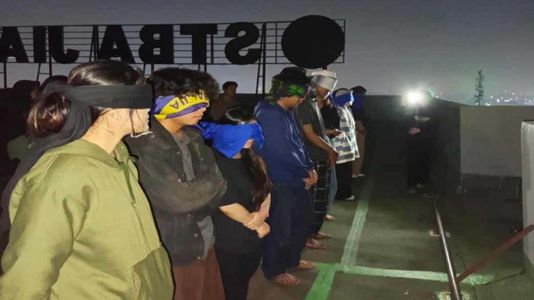 Anggota baru yang sedang mengikuti jurit malam di rooftop