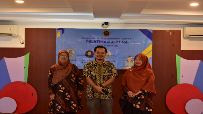 Bagi para pelamar program jisshu ginou maupun tokutei ginou, sertifikasi kemampuan bahasa Jepang yang diperlukan adalah kemampuan bahasa Jepang setara JLPT N4. Melihat penting calon pelamar program jisshu ginou maupun tokutei ginou untuk mengikuti JLPT terutama JLPT level N4, kami dari prodi bahasa Jepang STBA JIA sebagai salah satu institusi penyelenggara pendidikan bahasa Jepang yang ada di Bekasi terpanggil untuk memberikan pelatihan JLPT N4 kepada program jisshu ginou maupun tokutei ginou yang ada di LPK Sekai Hikari Indonesia. Untuk itu kami dari prodi Bahasa Jepang STBA JIA telah mengadakan kegiatan pengabdian kepada masyarakat (PKM) pelatihan JLPT N4, khususnya moji goi dan bunpou.